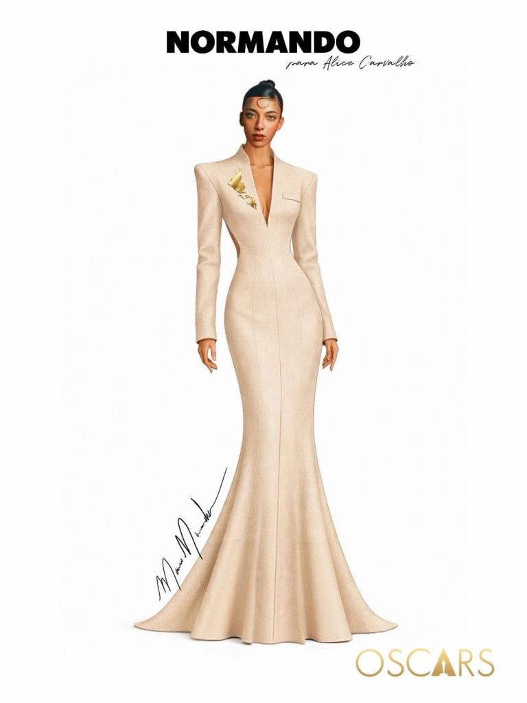 O estilista paraense Marco Normando levou a Amazônia para o tapete vermelho do Oscar 2026 ao assinar o vestido usado pela atriz Alice Carvalho, que interpreta a professora universitária Fátima no filme “O Agente Secreto”, dirigido por Kleber Mendonça Filho.