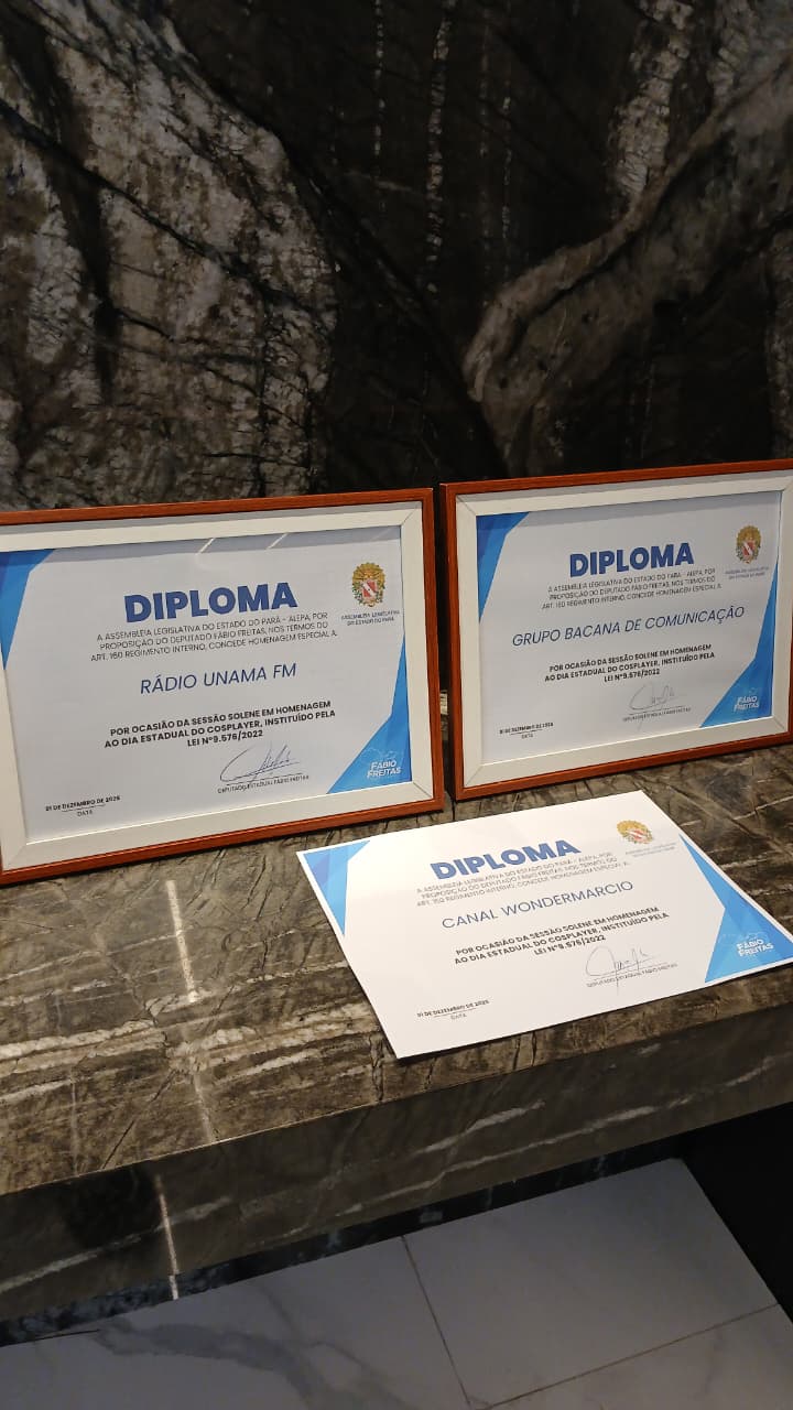 Diploma concedido à Rádio UNAMA FM durante a sessão solene