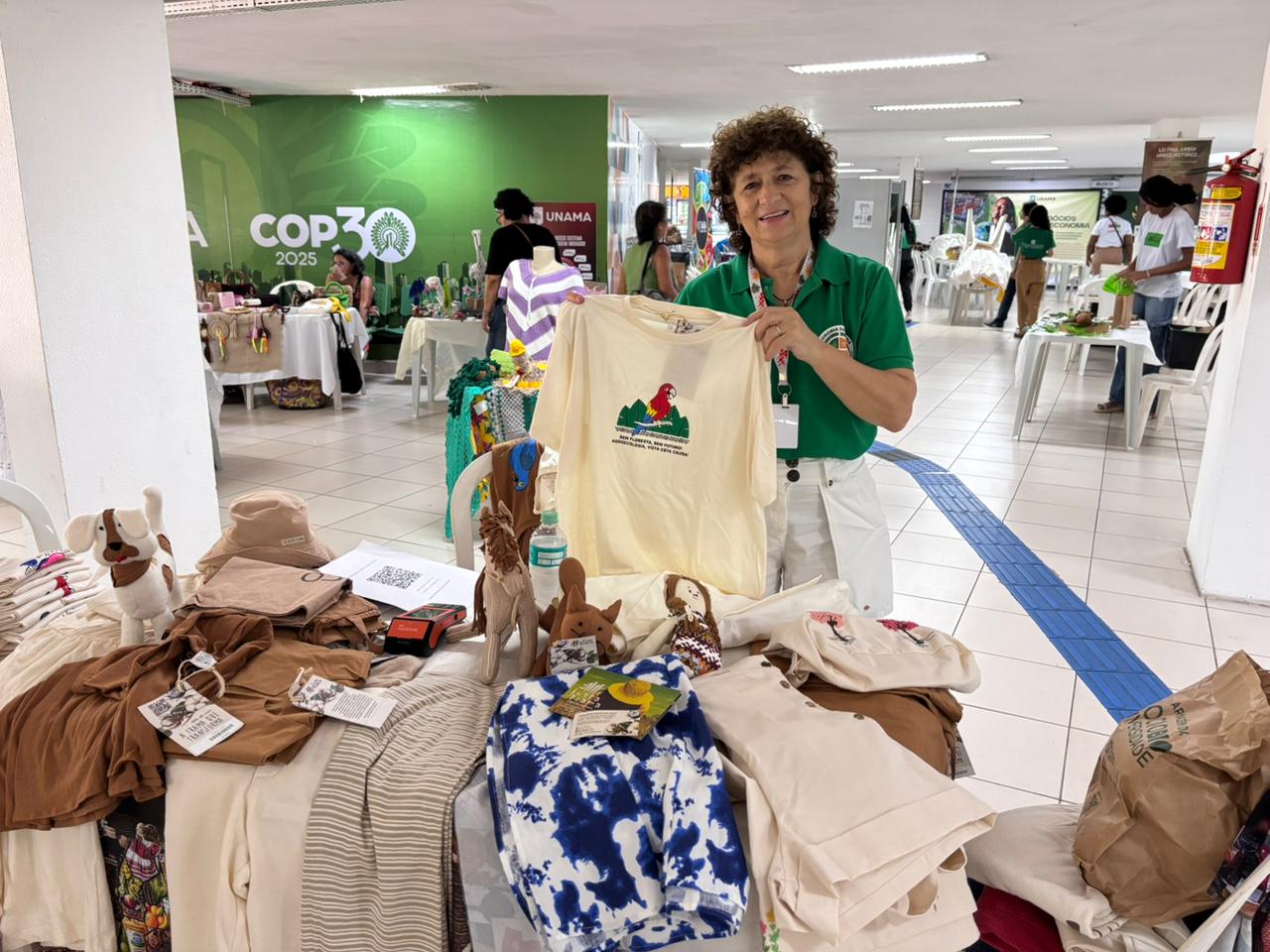 Nelsa explica que a produção busca a geração de renda de forma justa, bem como a inclusão da preservação do meio ambiente nesse processo. “E a parceria exatamente aqui com o Pará, com Belém, com a UNAMA, ela vem a partir da gente poder ter um espaço onde essas peças fossem comercializadas, que é na rede Andorinhas”, diz.